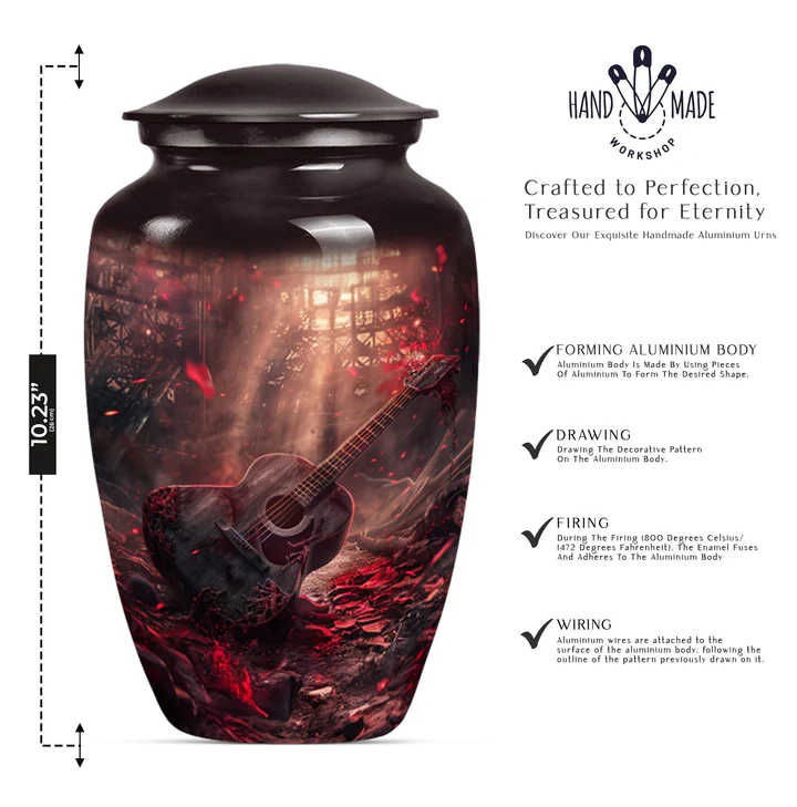 Guitar urns are ideal for musicians, music teachers, or anyone whose life revolved around music. They serve as distinctive centerpieces for memorial ceremonies or home displays. Families often find solace knowing that the urn reflects an important part of their loved one’s life, offering a unique and lasting tribute.