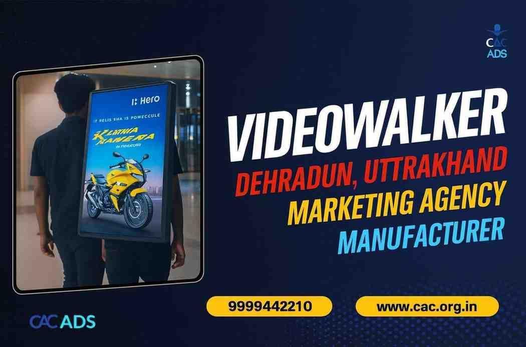 A video walker is a person carrying a screen on their back. This screen plays short videos about a product, sale, or event. People in the crowd stop and watch. It’s like a moving TV that comes right to them.