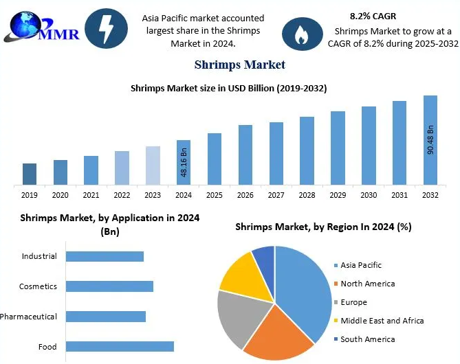 Valued at USD 48.16 billion in 2024, the shrimp market is expected to grow at a compound annual growth rate (CAGR) of 8.2% from 2025 to 2032, reaching nearly USD 90.48 billion. This growth trajectory underscores the escalating consumer preference for shrimp as a primary seafood choice.