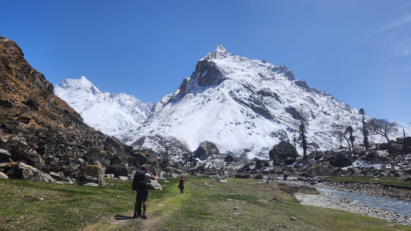 A short but steep climb leads to Odari, a campsite offering close-up views of Swargarohini Peak.