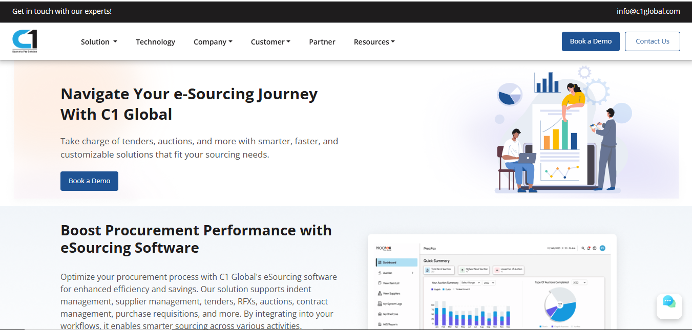 Finally, the real-time analytics and "Look-Ahead" dashboards provided by C1 Global’s e-Sourcing Software give the C-suite a level of visibility that was previously unattainable. In 2026, the Chief Procurement Officer must be able to report not just on past savings but on the "Future Value at Risk." Our e-sourcing solution provides a dynamic view of all active sourcing projects, upcoming contract expirations, and the impact of market volatility on the current budget. This transparency is essential for strategic planning and capital allocation, ensuring that the procurement function is perfectly aligned with the broader corporate goals. By choosing C1 Global’s AI-native technology, you are not just upgrading your Tender Management tools; you are building an intelligent, autonomous sourcing engine that will drive your organization’s growth for years to come. The future of procurement is intelligent, proactive, and predictive, and C1 Global is the partner that puts that power in your hands. Experience the difference that true AI integration can make and lead your industry into the next era of sourcing excellence.