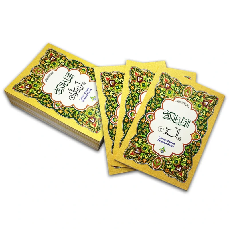 Correct recitation of the Quran requires proper application of Tajweed rules. This set includes Tajweedi color coding, where different colors indicate pronunciation rules such as: