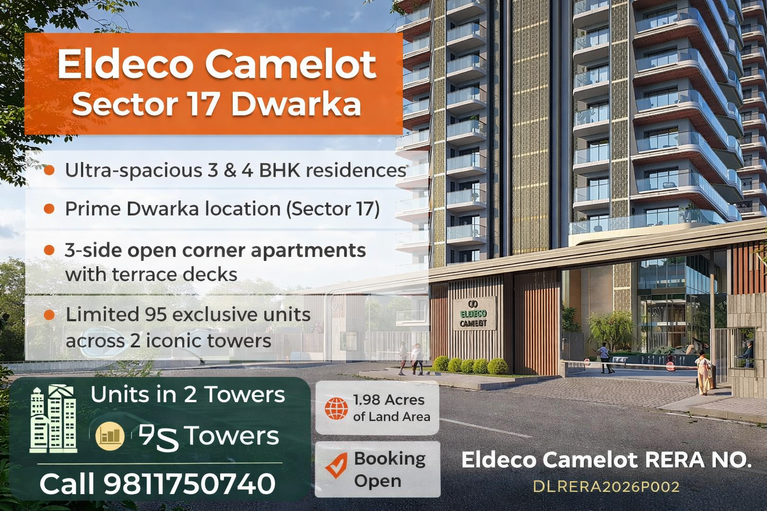 Eldeco Camelot Sector 17 Dwarka is a premium residential development offering spacious 3 and 4 BHK apartments in West Delhi. The project is ideal for homebuyers who prefer larger living spaces, modern architecture, and a peaceful environment within the city.