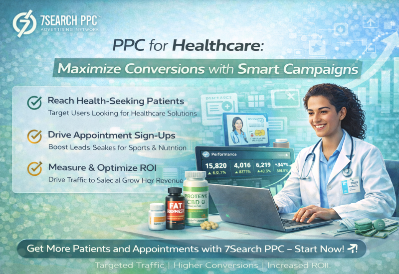 Ans. 7SearchPPC provides healthcare advertisers with a targeted platform to reach patients actively searching for services. It allows precise CPC traffic management, multi-format ad deployment, and performance tracking, helping hospitals and clinics optimize campaigns for maximum patient conversions.