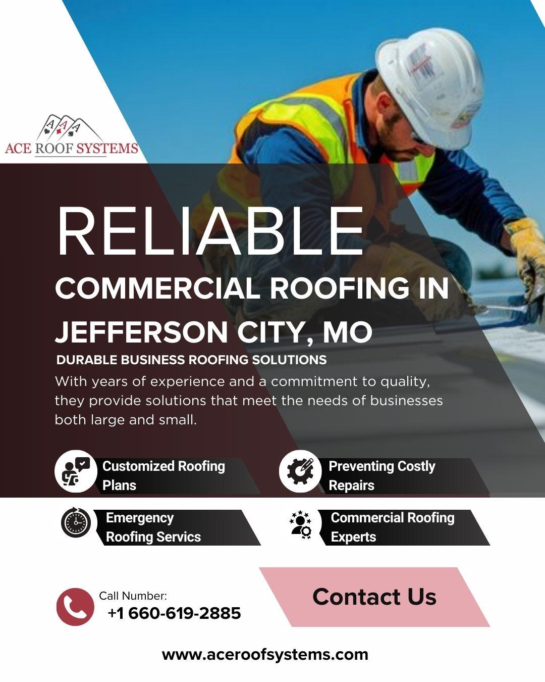 Commercial roofing in Jefferson City, MO helps protect businesses from harsh weather, moisture damage, and energy loss. Ace Roof Systems provides professional roof installation, repairs, maintenance, and energy-efficient roofing solutions tailored to different building types. Their customized roofing plans and preventative services help extend roof lifespan, reduce costly repairs, and improve overall property performance for long-term business protection.